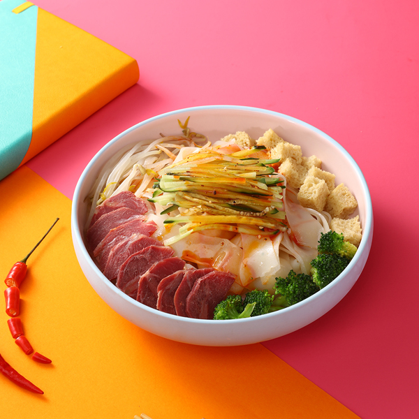 秘制红油搭配Q弹凉皮,爽滑鲜嫩,贵妃一笑酸辣爽口。